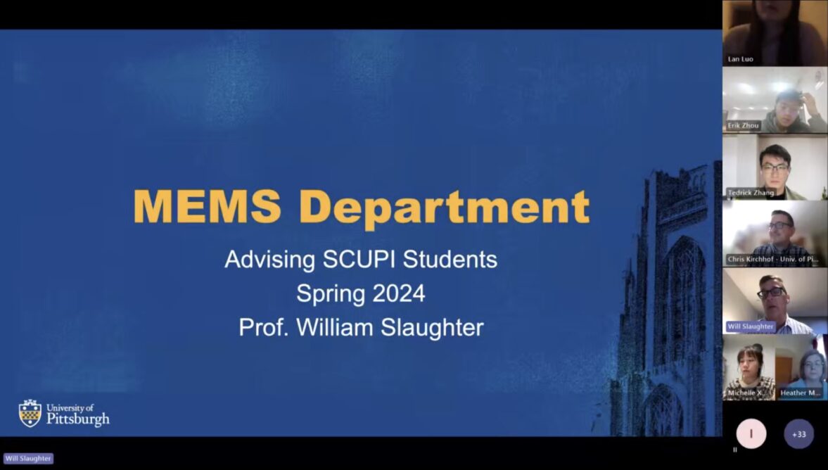 MSE seminar was held on February 22, 2024, from 20:00 to 21:00 (GMT+8) China Standard Time. The seminar invited Dr. Markus Chmielus, MSE Program Director of Department of Mechanical Engineering & Materials Science, SSOE. The seminar began with a brief introduction to MSE, covering topics such as the development of the discipline, research emphasis, and current employment trends. Dr. Chmielus then introduced the plan and advantages of the Pitt-MSE program, highlighting specific cases that demonstrated the faculty’s focus areas. Following the presentation, Dr. Minking Chyu, Dean of SCUPI, joined the discussion to explore research opportunities available to students both on-campus and externally.