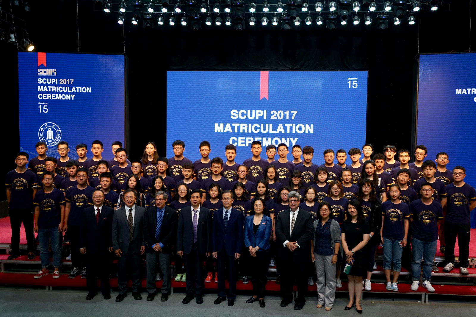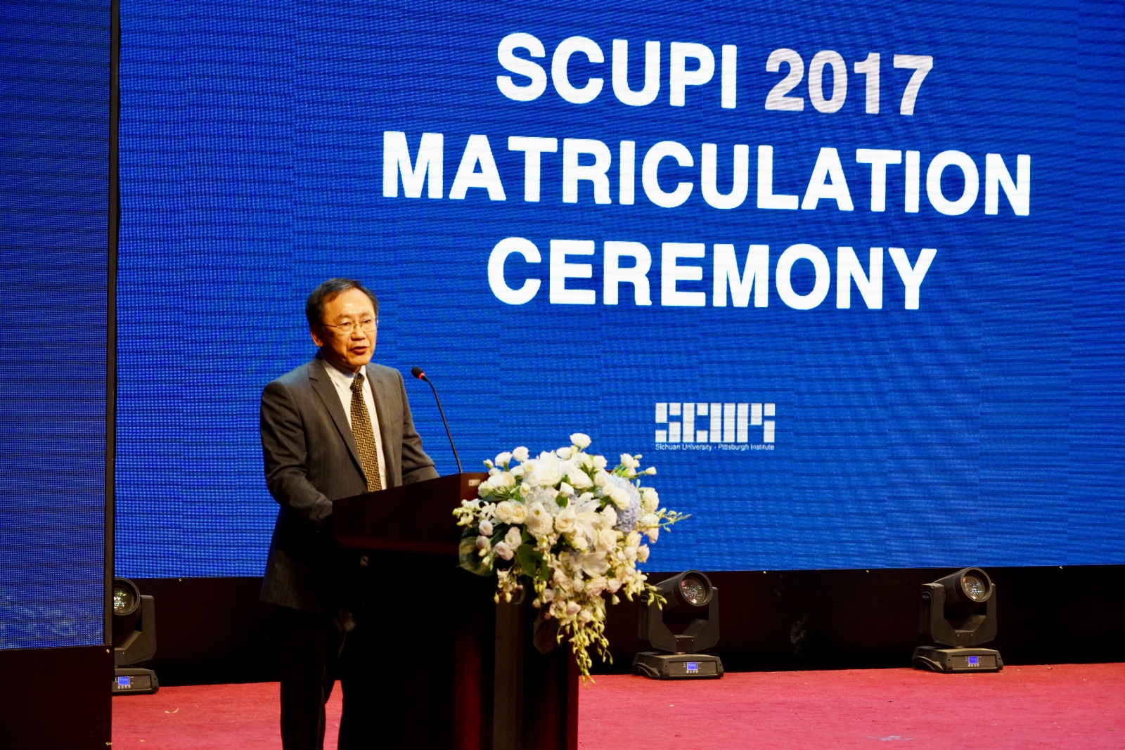 On the September 15th , 2017, Matriculation Ceremony for the class of 2017 was held on the Jiangan Campus, Chengdu. Xie Heping, the President of Sichuan University (SCU), Li Guangxian, the Executive Vice President of SCU, Liang Bin, the Vice President of SCU, Li Rongjun, the Vice President of SCU, Minking Chyu, the Dean of Sichuan University – Pittsburgh Institute (SCUPI), Larry Shuman, Distinguished Service Professor and Senior Associate Dean for Academic Affairs at the University of Pittsburgh Swanson School of Engineering (Pitt), attended the ceremony. Representatives from other departments and schoolsof Sichuan University, all faculty, staff and students from SCUPI attended the ceremony to celebrate the freshman students’ beginning of their academic journey at SCUPI.