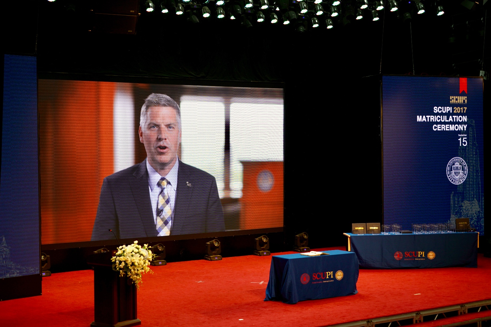 Chancellor Patrick Gallagher, the president of Pitt, also gave a warm welcome to the freshman students via video. Chancellor Gallagher mentioned that SCUPI as a Sino-US joint institute is aiming at producing outstanding engineers and scholars. At SCUPI, students will have a productive and enjoyable journey.