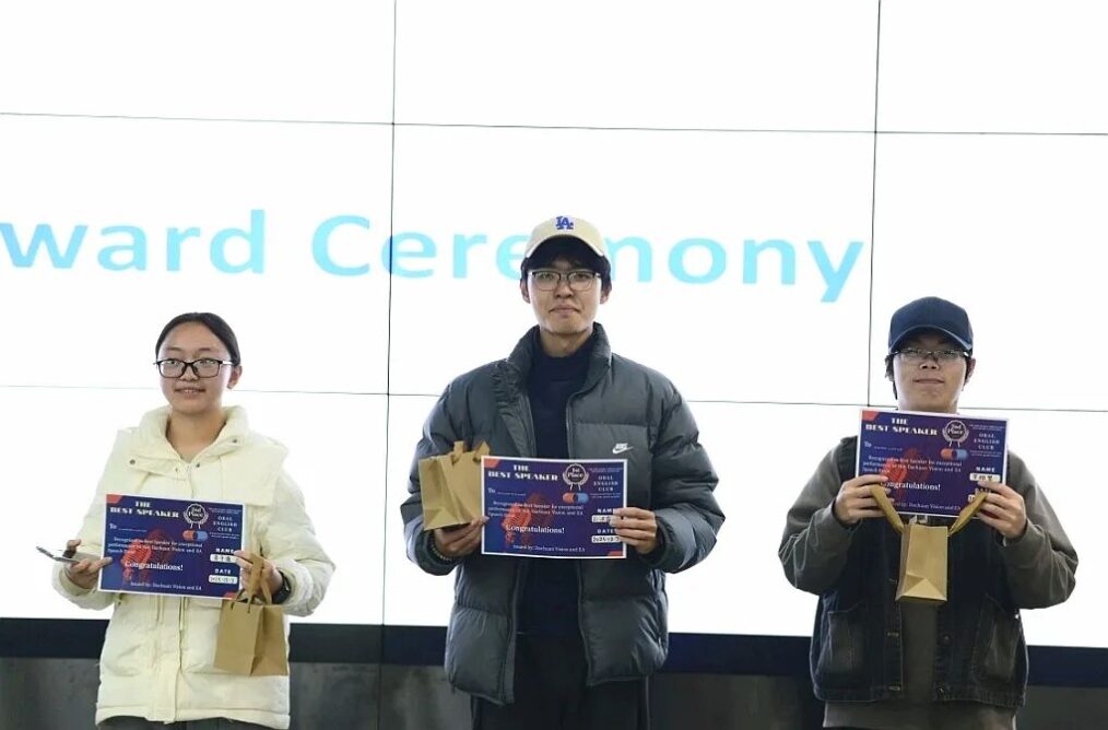 The audience participated in a unified vote, creating a tense atmosphere. After efficient tallying by the staff, the hosts announced the results: Honglin Peng was honored as the Best Speaker, while Ziyi Xiao and Yahui Luo received Participation Awards. The exchange event was successfully concluded.