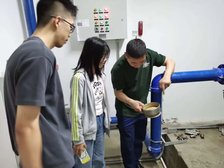 The maintainers led the volunteers to visit the power distribution room, rainwater recovery system, and water supply room, and introduced the civil defense engineering of the building. During the visit, the maintainer introduced the simple working principles of each facility to the volunteers, explained how the rainwater recovery system works, and demonstrated the working process of the pump room. During the visit and explanation, the volunteers felt the necessity of converting theoretical knowledge into practice.