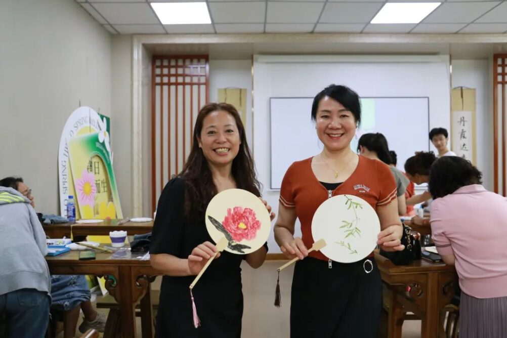 With the help and guidance of volunteers, the residents painted the fans. During the exhibition, everyone shared their creative inspirations. Creators admired each other’s works and exchanged ideas.
