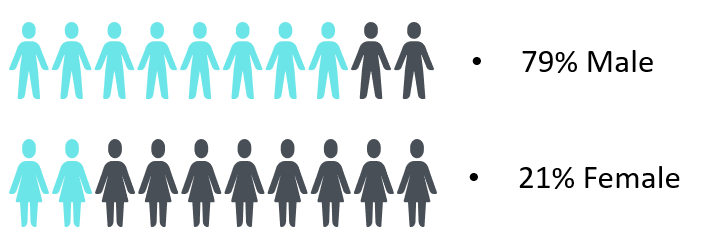 - 135 are male and 35 are female, forming a ratio of 3.86:1.