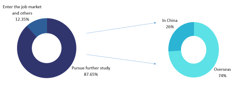 - Of the 170 graduates, 149 or 87.65% continued to pursue graduate study, 110 or 74 % chose to study overseas, while 39 chose to stay in China for further education.