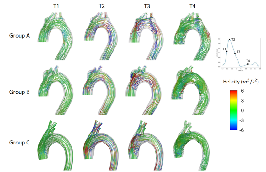 【Ref: Cheng, S., Qiu, Y., He, D., Wang, L., Weng, C., Yuan, D., & Li, K. (2025). Helical vortex arising from aberrant right subclavian artery induces occurrence of dissection tears. Physics of Fluids, 37(3), 031911. //doi.org/10.1063/5.0255493】