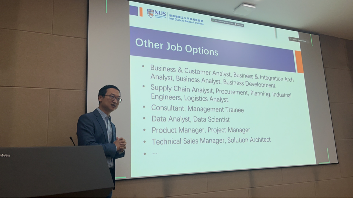 First, Professor Nan Chen, Deputy Head (Graduate Programmes) of Department of Industrial Systems Engineering and Management at NUS introduced the basic information, admission requirements, study mode and living conditions of NUSRI to the students, then he demonstrated the advantages of the “3+1+1” programme through graduates’ employment and further studies data.
