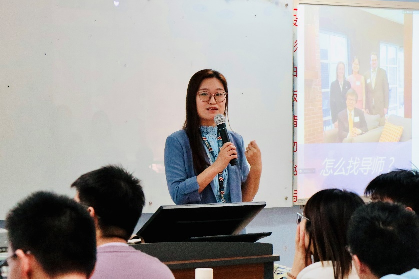 At the sharing session, Ms. Liu Di gave a detailed account of her preparation before going abroad, her interaction with her supervisor after admission, and her experience of changing her supervisor during the doctoral period. She shared her research and teaching experiences as a research assistant, teaching assistant, and lecturer at Clemson University. She advised students to be clear and definite about their goals and seize opportunities for self-improvement.