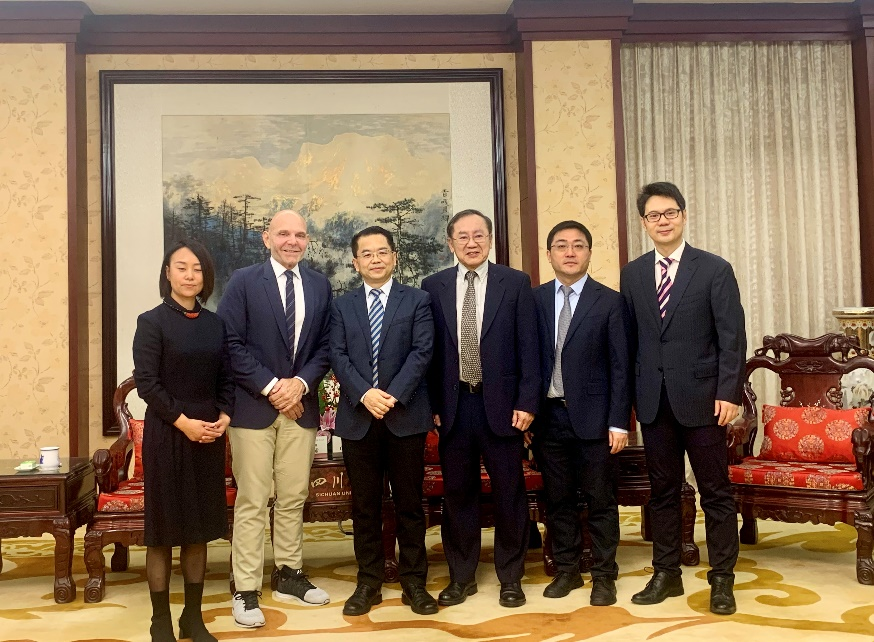 On 24 October, Vice President of Sichuan University Liangyin Chu welcomed Vice Provost of Yeshiva University Paul Russo, and his delegation on Wangjiang Campus. The meeting was joined by Director of International Office of Sichuan University, Jiagang Wu; Dean of SCUPI, Minking Chyu; and Assistant Dean of SCUPI, Ye Li.